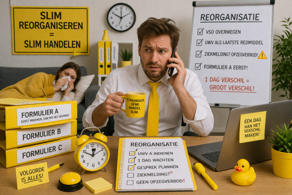 Sta je op het punt om te reorganiseren? Dan weet je waarschijnlijk al dat afscheid nemen van medewerkers soms onvermijdelijk is. Wat veel werkgevers en HR-afdelingen onderschatten, is dat de volgorde van handelen cruciaal is.