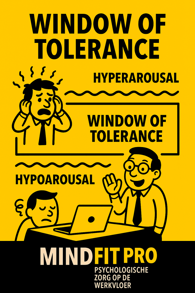 De Window of Tolerance bepaalt of we flexibel en effectief kunnen functioneren, of overspoeld raken door stress. Op de werkvloer zie je dagelijks signalen van mensen die (bijna) buiten hun window vallen. Door deze signalen te herkennen en bespreekbaar te maken, kun je uitval voorkomen en de veerkracht vergroten.